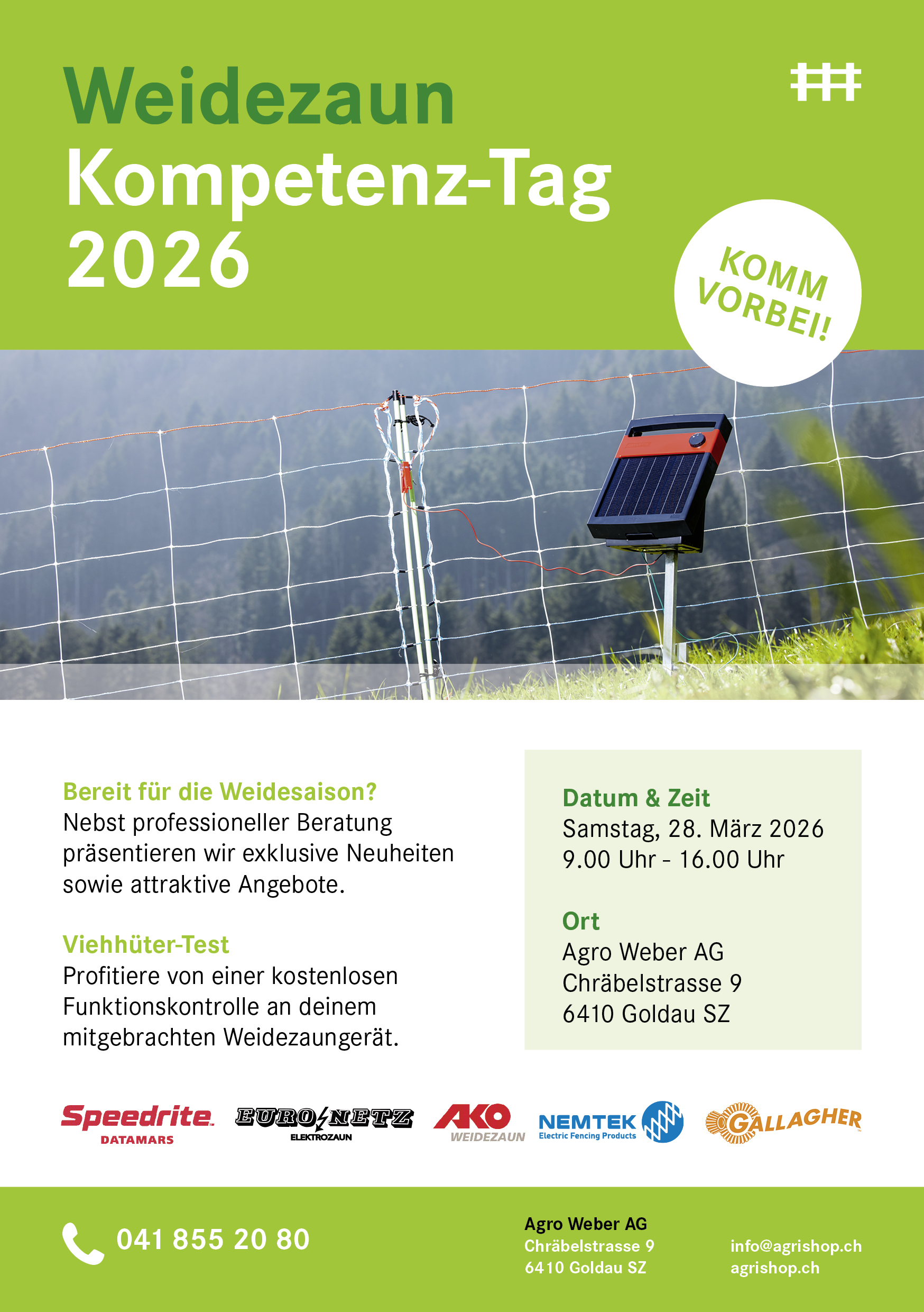 Der Weidezaun-Kompetenztag bei Agro Weber AG verspricht nicht nur eine informative Veranstaltung zu sein, sondern auch ein geselliges Treffen, das Landwirte zusammenbringt und den Austausch fördert. Sei dabei und entdecke, wie du deine Viehhaltung auf die nächste Stufe heben kannst!