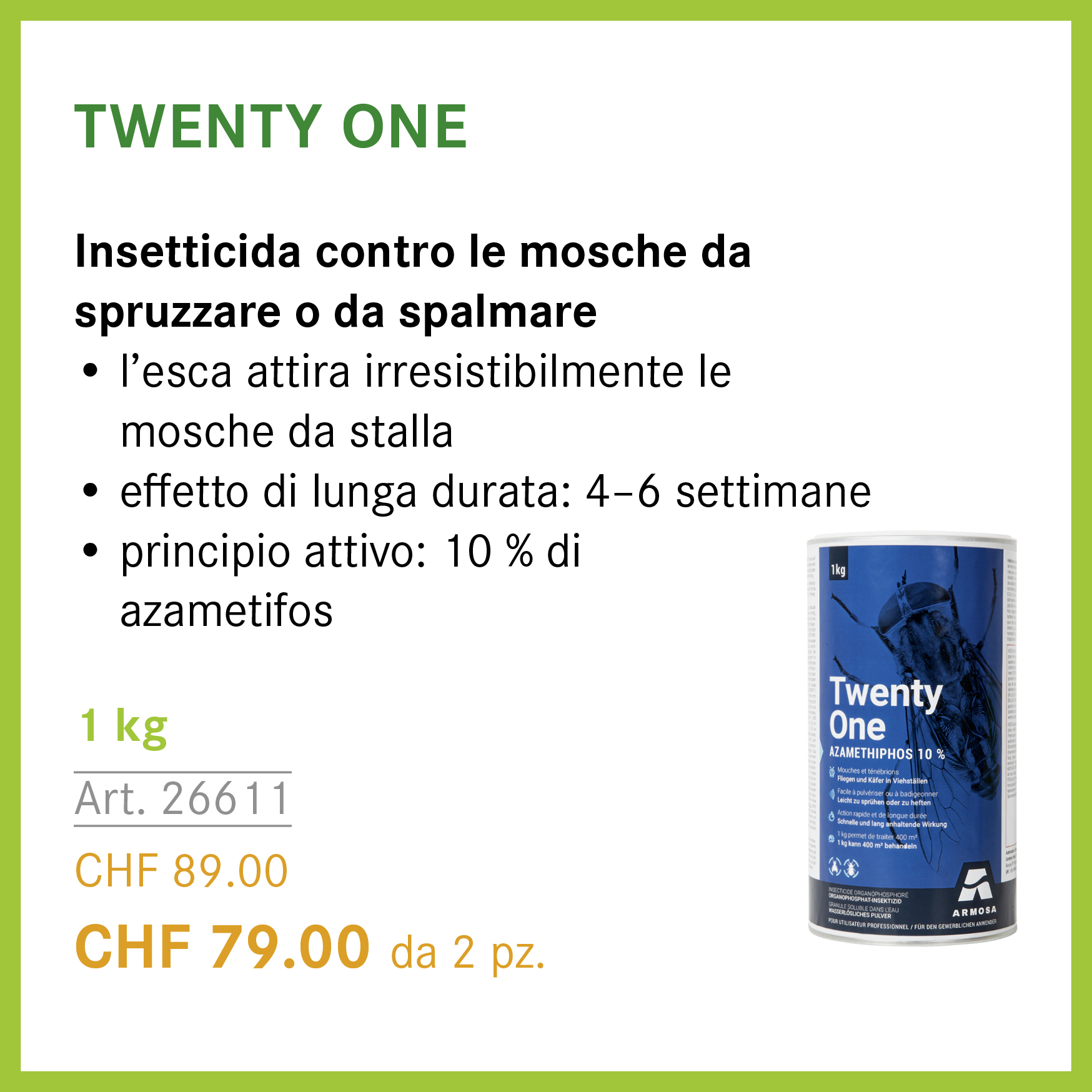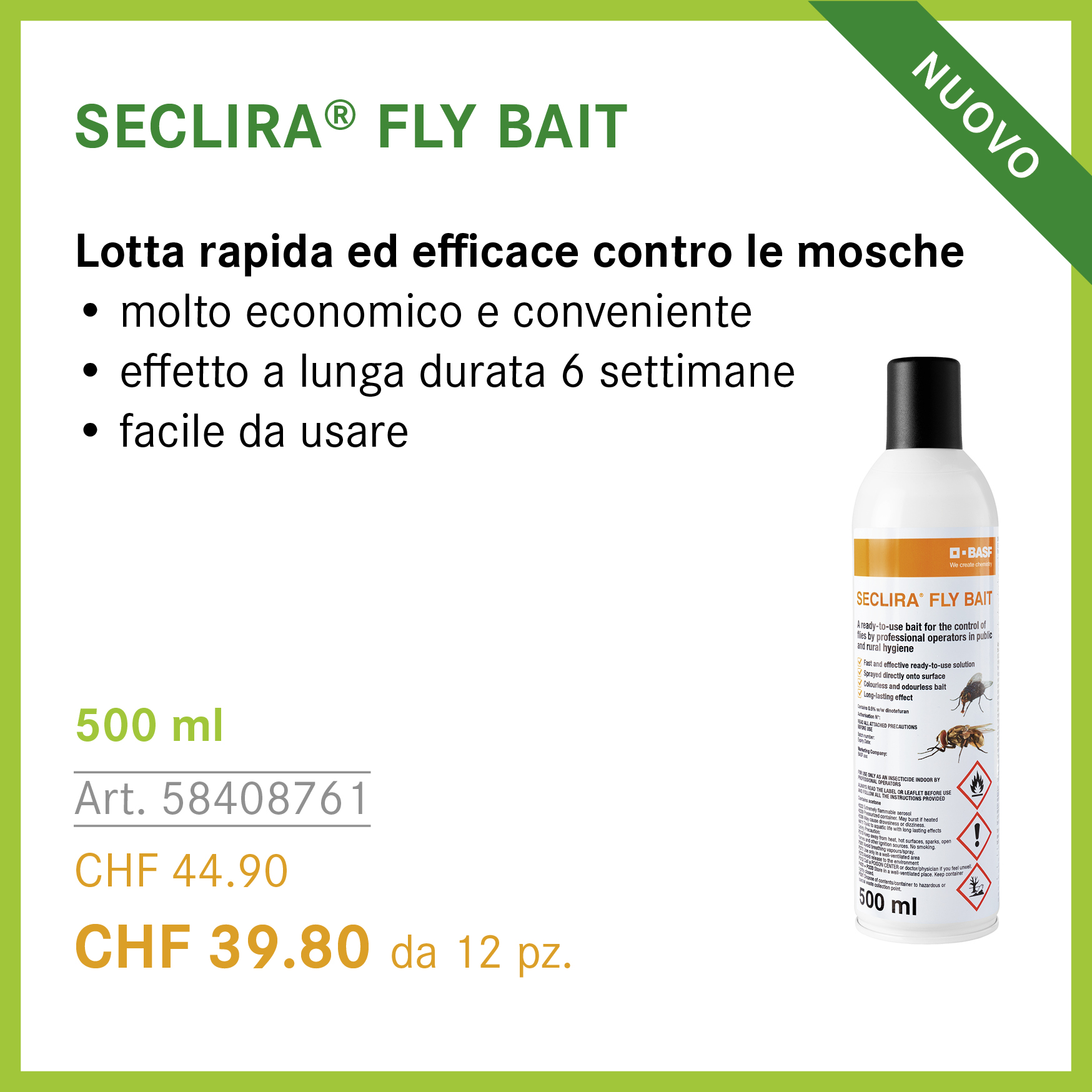 Inoltre, con trappole adesive e disinfestatori elettrici per mosche è possibile effettuare trattamenti localizzati fino a 150 m².